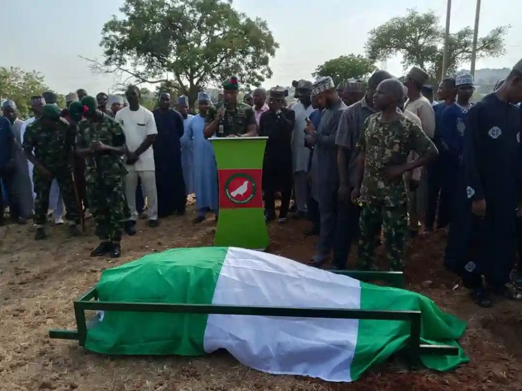 Among dignitaries present at the burial were Brigadier General Idris Abdulrahman, the Kuguna of Lokoja, Alhaji Hamisu Nayashi, the Dama of Lokoja, Alhaji Sulaiman Baba Ali, community leaders and thousands of mourners who came to pay their last respect to the slain gallant soldier.